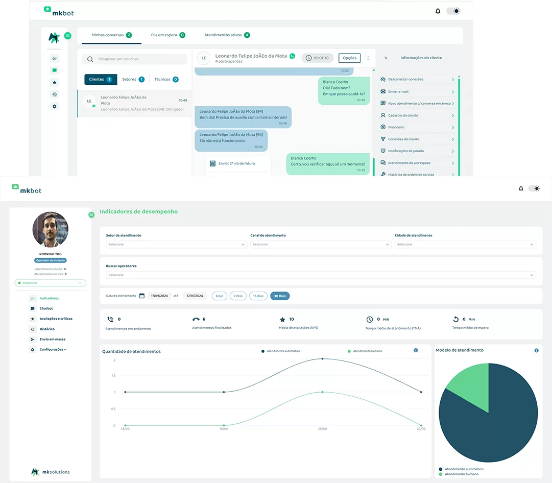 Controle completo do seu provedor, desde os seus números financaeiros, como inadimplência e ticket médio attpe o seu funil comercial e os dados da sua operação