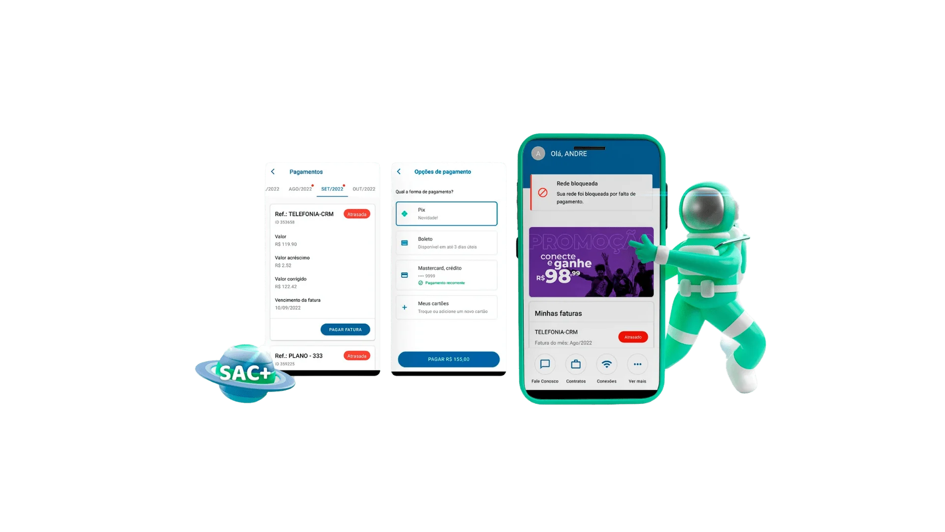 Aplicativo que te dá praticidade. Com o MK SAC+ tenha as principais funcionalidades do seu provedor na palma da mão dos seus clientes